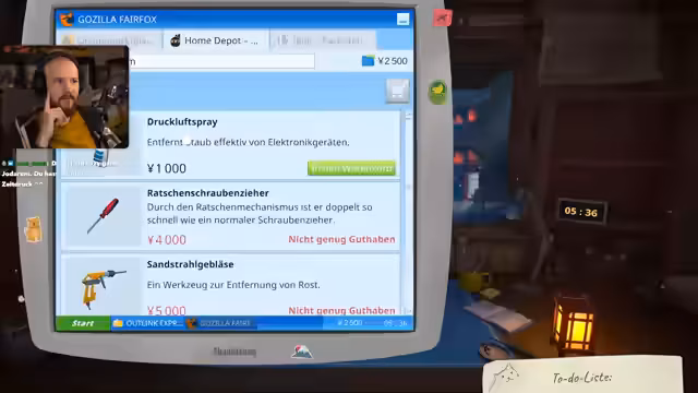 01:32:21Nach der Eröffnung des Ladens und dem Aufräumen gehen neue Online-Aufträge ein. Ein Auftrag beinhaltet die Reinigung eines Atari-Geräts, der direkt angenommen wird. Gleichzeitig zeigt sich das erste Problem bei einem anderen Auftrag: Für die Reparatur einer Taschenlampe sind benötigte Teile, wie eine Leiterplatte, auf dem Marktplatz ausverkauft, was die Arbeit vorerst blockiert. Der Streamer stellt fest, dass das Geschäft anläuft, aber auch Herausforderungen mit sich bringt.