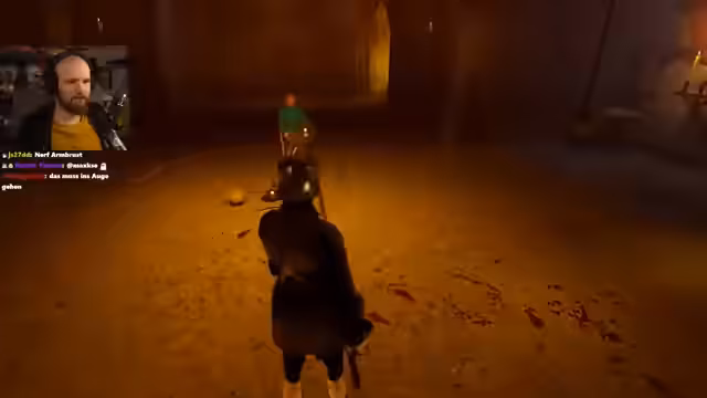01:38:27Ein Turnier startet, der Streamer nutzt die Dienste des gemieteten Söldners Hermann. Die Gegner sind stark bewaffnet und gepanzert. Es wird eine Taktik entwickelt, bei der Hermann in den Rücken der Gegner geführt wird. Der Streamer testet weiterhin seine neue Schlagtechnik von oben. Es kommt zu einem kritischen Moment, als Hermann nach einem Treffer seine Waffe verliert, woraufhin der Streamer den Gegner selbst besiegen muss.