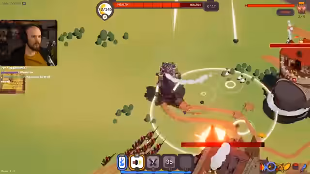 02:10:47Nachdem er den ersten Boss besiegt hat, erkundet der Streamer weiter die Karte und sammelt Ressourcen. Er entdeckt eine neue Burg, die er bekämpfen muss. Er entscheidet sich, sein Build mit einer Rambock zu verstärken, um gegnerliche Einheiten wegstoßen und Schaden zu verursachen. Er testet diese neue Taktik, indem er gegnerische Burgen überfährt und sie mit der Rambock angreift.