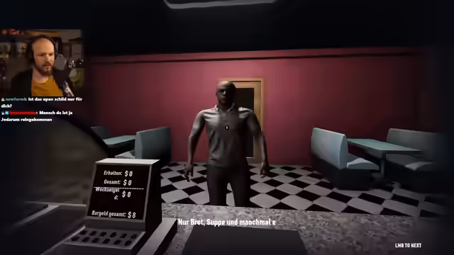 03:43:05Der Stream beginnt mit der Eröffnung eines kleinen, heruntergekommenen Eisladens. Der Betreiber, sichtlich unvorbereitet, stellt fest, dass die meisten Eissorten bereits leer sind und versucht, neue Eiscreme frisch anzumischen. Die ersten Kunden tauchen auf, ungewöhnliche und teure Bestellungen aufgeben, wie zum Beispiel Blaubeereis für 8 Dollar, und der Besitzer kämpft mit leeren Behältern, dem Mangel an Zutaten und der ungewöhnlichen Bezahlung in großen Scheinen, was zu ständigem Wechselgeldstress führt.