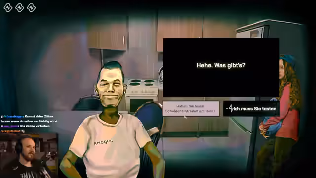 06:27:50Der Streamer eröffnet mit einer emotionalen, fiktiven Geschichte über finanzielle Not und Beziehungsprobleme, bevor er in die Kernphase des Survival-Horror-Spiels 'No, I'm Not a Human' übergeht. Es folgt eine intensive Diskussion über die Spielmechaniken, insbesondere das Testen von Merkmalen (Augen, Zähne, Hautirritationen) zur Identifizierung von 'Besuchern'. Der Streamer experimentiert mit verschiedenen Testkombinationen, diskutiert die Regeln des Spiels und zeigt Frustration über unklare Spielhinweise. Dabei kommt es zu spannenden Interaktionen mit NPC-Zwangsfiguren, die das Überleben gefährden.