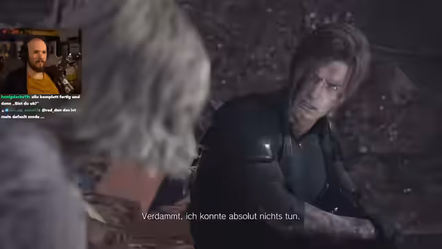 05:14:55Die Entscheidung fällt, das Passwort wird eingegeben, und Elpis wird aktiviert, was den Bosskampf gegen Victor Gideon einleitet. Nach einem intensiven Kampf, in dem der Spieler seine gesamten Ressourcen einsetzt und den Bosskörper mit einem Beilattacke besiegt, werden alle im Raum Anwesenden, einschließlich Leon und Grace, mit dem Heilmittel gespritzt. Die Credits laufen, und ein Bonus-Szene zeigt eine geheilte Grace und Emily in einer sicheren Zukunft. Der Streamer gibt sein persönliches Resümee ab, lobt das Spiel trotz der eindeutig anspruchsvollen Schleichphasen und präsentiert die aus den Boni freigeschaltbaren Outfits und Extras.