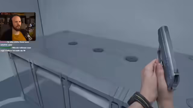04:06:45Im weiteren Verlauf des Spiels setzt der Streamer auf Tarnmanöver (Sneaken), um einen mächtigen Licker-Gegner zu umgehen. Er findet Säureflaschen, die gegen diese Art von Gegnern besonders effektiv sind. Eine unglückliche Interaktion führt jedoch dazu, dass die Flasche zerschellt und den Gegner alarmiert. Ein daraus resultierender, unkontrollierter Kampf kostet dem Streamer eine Waffe und macht die Situation erneut äußerst gefährlich und unübersichtlich.