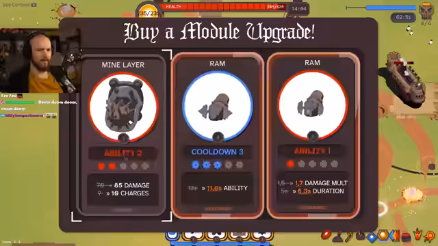 01:03:55Der Streamer beginnt den Kampf gegen den Boss mit einem gut aufgestellten Team. Er nutzt die Fähigkeiten seiner Einheiten, um Schaden zu verursachen und sich zu heilen, indem er gegnerische Truppen 'frischt'. Nachdem der Boss besiegt wurde, werden zwei neue Artefakte verfügbar. Er entscheidet sich für 'Bouncing Shot', um mehr Feuerkrater zu erzeugen und die optische Wirkung zu verstärken. Der nächste Schritt ist es, das Spiel für den Run fertig zu machen.