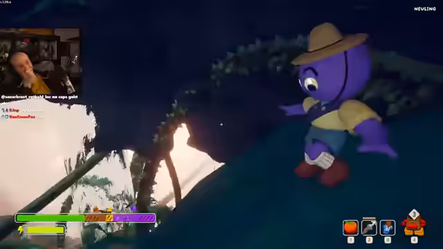 01:53:21Auf dem weiteren Weg entdeckt der Streamer Rauch, der auf mögliche Rettung hindeutet. Dabei stellt er fest, dass Reg die Oberflächen glitschig macht und mehr Ausdauer verbraucht. Es kommt zu mehreren gefährlichen Begegnungen mit giftigen Pflanzen und Tieren, die Schaden verursachen können. Der Streamer und seine Mitspieler müssen aufpassen, nicht in Fallen zu tappen oder sich zu vergiften, während sie nach unten und wieder nach oben klettern.