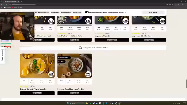 00:49:47Der Streamer präsentiert einen Sponsor, PrepMyMeal, eine Tiefkühl-Mahlzeitenservice. Er betont, dass er bereits vor der Kooperation ein Fan der Produkte war. Obwohl er das Essen als teuer beschreibt, lobt er den Geschmack und die Qualität der Zutaten. Er führt kurz durch die Webseite und zeigt verschiedene Gerichte, darunter auch vegane Optionen. Um die Produkte zu bewerben, nennt er den Rabattcode Jodarum für 5% Ermäßigung und hebt die 30-tägige Geld-zurück-Garantie hervor.