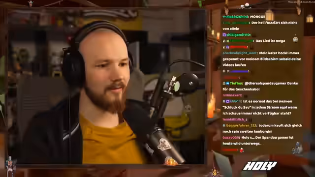 01:00:05Der Streamer berichtet, dass sein Kater Sam sehr redselig ist und ihm viel erzählt, aber während seiner 'Kotzerei' nicht antwortet. Aufgrund eines typischen Katzengeräusches im Flur war der Streamer kurz alarmiert, beruhigte sich aber dann wieder. Es gab technische Probleme mit der Software, bei der ein bestimmter Sound ohne erkennbaren Grund abgespielt wurde, was Verwirrung stiftete. Der Streamer nutzt vier Bildschirme: einen für den Chat, einen für den Stream-Manager und Chatterino, einen für OBS-Preview und einen für Spotify und Alerts. Die Abos wurden thematisiert, wobei der Streamer erklärt, dass sie am PC 4,99€ kosten, am Handy jedoch teurer sein können.