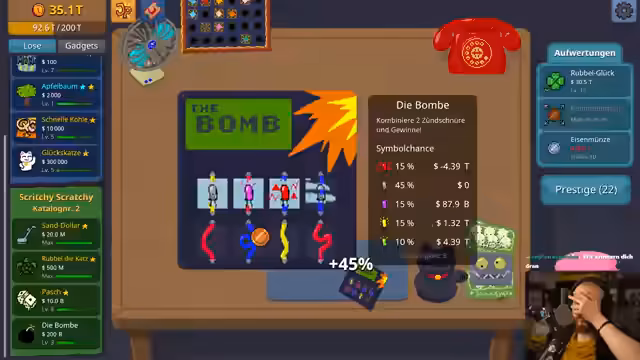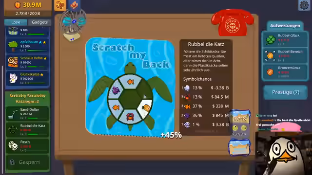 01:37:04Der Streamer riskiert immer mehr, indem er seine gesamten Ersparnisse in riskante Glückskatzen investiert, die zu massiven Verlusten führen. Er verliert dabei Milliarden, bleibt aber trotz der hohen Rückschläge gelassen und gibt zu, süchtig nach dem Gameplay zu sein. Trotz der Verluste vertraut er seinem Rubbel-Bot und dessen Fähigkeiten, das Kapital wieder aufzubauen. Durch eine Kombination aus Glück und Upgrades schafft er es, an die Grenze von 500 Millionen Dollar zu gelangen, um das Upgrade 'Rubbelbereich' freizuschalten.
