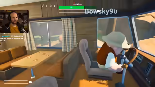01:07:06Nachdem die Spieler in das Spiel eingetreten sind, treten sofort Kommunikationsprobleme auf, da Mi sich selbst stummschaltet und dann nur noch leise im Spiel zu hören ist. Es stellt sich heraus, dass eine Taste (V) gedrückt werden muss, um das Mikrofon im Spiel zu aktivieren, was zu anfänglicher Verwirrung und Gelächter führt. Die erste Mission besteht darin, ein Gerät von A nach B zu befördern. Mi übernimmt das Steuer des Wohnmobils, während die anderen Spieler das Fahrzeug erkunden und versuchen, sich mit den grundlegenden Mechaniken vertraut zu machen. Es werden erste Gegenstände wie ein Lungenbrötchen entdeckt und die Inventarverwaltung wird diskutiert. Die Spieler bemerken die Größe des Fahrzeugs im Vergleich zu ihren Charakteren und versuchen, sich auf dem Dach zu orientieren, um mögliche Leitern oder Zugänge zu finden.