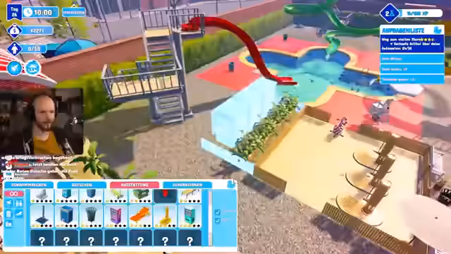 04:20:00Mit Erreichen von vier Sternen im Park stehen neue Optionen zur Verfügung, darunter eine erweiterte Farbpalette, neue Schwimmbecken und prestigeträchtige Rutschen. Der Streamer plant, den Wellnessbereich grundlegend zu überarbeiten und die Attraktionen zu erweitern. Allerdings stellt sich heraus, dass die neuen Schwimmbecke sehr kostspielig sind und weitere Forschungspunkte benötigt werden, was die Entwicklung komplexer gestaltet.