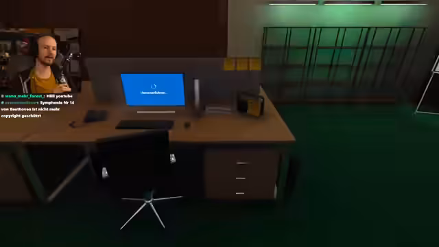 01:36:30Es werden Ordner nach Farbe sortiert. Es wird eine Sonnenbrille gefunden. Walter wird verflucht. Es wird geguckt, was die Sonnenbrille macht. Es wird vermutet, dass der Dino-Helm für die Dino-Anomalie ist. Eine grüne 4 wird entdeckt. Das zweite Sekundärziel wird abgeschlossen. Es werden Überwachungsanomalien gefunden. Ein neuer Bereich ist verfügbar. Das Labor wird entdeckt. Es werden rote Zahlen entdeckt. Es werden Entchen auf der Sonnenbrille entdeckt. Eine 2 wird entdeckt. Es wird gesagt, dass es ein Troll-Anomalie-Spiel ist. Es wird die Gänge abgegangen. Es wird Feedback gegeben. Radioaktiver Müll wird entdeckt. Es wird gesagt, dass es viele Items im Labor gibt. Eine 8 wird entdeckt. Ein Grabbelarm wird entdeckt. Eine 6 wird entdeckt. Es wird eine blaue 7 entdeckt. Es wird ein seltsames Dröhnen gehört. Es wird ein Reagenzglas gefunden. Es wird eine Bestellung bei Holi gemacht. Ein Pilzgesicht wird entdeckt. Es werden drei Gläschen gefunden. Ein Wurm und ein Zettel werden entdeckt. Es werden vertrauliche Dokumente gefunden. Es wird ein Bosskampf gemacht. Es wird etwas Kaffee getrunken. Der Drucker wird überprüft. Es wird die Pflanze gegossen. Es wird ein Bild eingesammelt. Es wird nicht 100% verstanden, was Punktgleichzeit heißt. Eine 5 wird entdeckt. Es wird die letzte Zahl gefunden. Ein neuer Bereich ist verfügbar. Walter wird frei gelassen. Es werden die Würmer ausgekotzt. Es wird ein Statusbericht der Versuchsperson angezeigt. Es wird gekündigt. Die Erinnerungen werden gelöscht. Es wird ein Fazit gezogen. Es werden fehlende Anomalien und Gegenstände angezeigt. Es wird gesagt, dass man einfach nur machen muss. Es wird gesagt, dass Stream hängt. Es wird gesagt, dass alles super läuft. Es wird ein Simulator am Start. Es wird ein Waterpark Simulator gestartet. Es wird gesagt, dass es stressig wird. Es wird eine Ente entdeckt. Es wird gesagt, dass es das erste Mal gespielt wird. Es wird gesagt, dass der Alert leckt. Es wird gesagt, dass die Karte Trockenfutter gegeben wird.