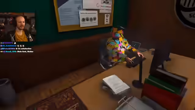 01:12:54Es wird eine weiße Acht als Anomalie identifiziert. Eine Ente spawnt an verschiedenen Orten. Es wird festgestellt, dass man Anomalien austesten kann, ohne den Fortschritt zu verlieren. Ein Dino-Helm wird gefunden. Es wird festgestellt, dass sich das Aussehen eines Raumes verändert hat und die Community um Expertise gebeten. Es wird vermutet, dass das Grüne eine Anomalie ist. Es wird beschlossen, dass alles so ist, wie es sein soll. Eine Mini-Pflanze wird entdeckt. Die Wand ist grün. Walter sitzt einfach da. Dokumente sollen einzeln geschreddert werden. Ein Schredder wird gefunden. Es werden immer wieder Dokumente gefunden. Eine Tasse wird gefunden, aber sie hat keinen Code. Walter wird in die Hölle entführt und zwingt dazu, Papiere zu schreddern. Die letzte Zahl, eine grüne 6, wird gefunden. Ein neuer Bereich ist verfügbar. Es wird ein Serverraum entdeckt. Es wird vermutet, dass ein Serum verabreicht wird, um die Leute arbeitsfähiger zu machen. Walter wird die ganze Zeit beim Arbeiten beobachtet, auch auf dem Klo.