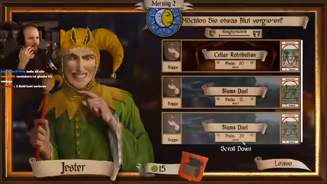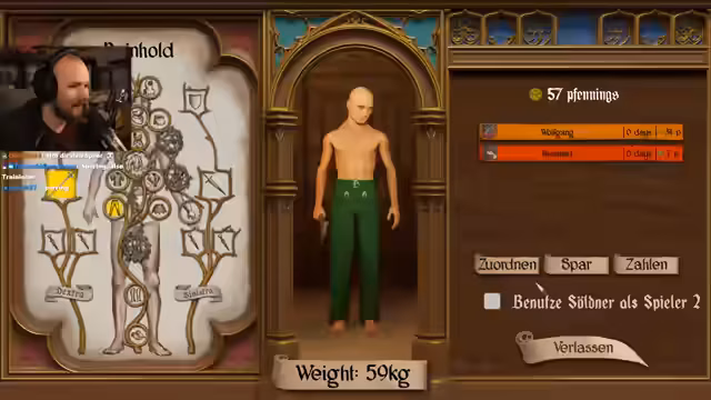 02:28:56Nach einem schweren Kampf und dem Verlust mehrerer Söldner, darunter Fabian, muss der Streamer die Ausrüstung seiner verbliebenen Kämpfer überprüfen und optimieren. Bei der Verbesserung der Rüstung stellt er fest, dass er wichtige Ressourcen verloren hat. Um am Turnier teilzunehmen, beschließt er, Wolfgang und Reinhold als neue Söldner zu verpflichten, was ihn jedoch viel Geld kostet.