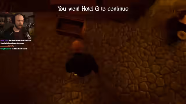 01:39:22Für ein anspruchsvolles Turnier wird der stärkere Söldner Wolfhard engagiert. Das Turnier besteht aus sieben Runden gegen immer mehr Gegner. Die Zusammenarbeit mit Wolfhard ist von Anfang an erfolgreich. Der Streamer gewinnt mehrere Kämpfe durch präzise Treffer, auch wenn Wolfhard am Ende stirbt. Der Sieg wird mit Belohnungen wie einem neuen 'Drip' gefeiert.