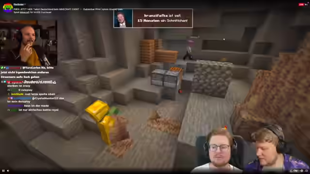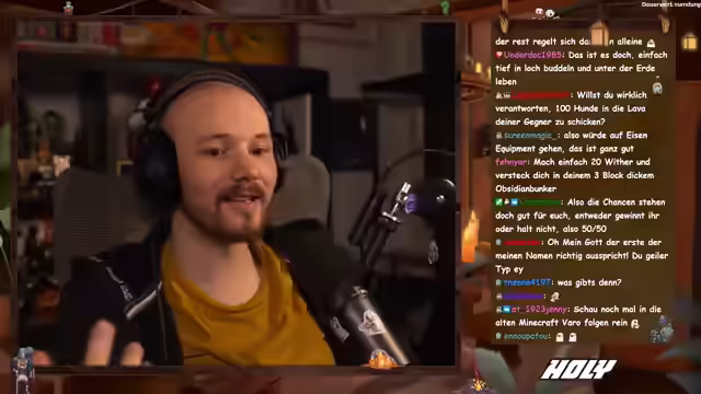 00:40:11Der Streamer verbindet sich mit Bowski für einen gemeinsamen Stream, um sich auf das bevorstehende Minecraft PvP Event vorzubereiten. Bowski teilt seine Ziele für das Event: nicht als Erster sterben, nicht durch einen dummen Fehler sterben, nach dem Streamer sterben und idealerweise einen bekannten Streamer ausschalten. Der gemeinsame Chat wird aktiviert. Bowski äußert seine Aufregung und der Streamer teilt mit, dass die Map verkleinert wurde, was die Sache noch schwieriger macht. Sie sprechen über Teamkills, die deaktiviert sind, und scherzen darüber, dass der Streamer schneller als Bowski sein muss. Bowski berichtet von Tipps, die er von Baron erhalten hat, wie z.B. Gold wegzuwerfen, Rüstung erst ab Eisen zu nutzen und Sprungangriffe auszuführen. Sie diskutieren Taktiken wie das Fokussieren auf Essen in der Overworld, das Sammeln von Holz, das Herstellen eines Schildes und das Farmen in Minen, bis sie volle Eisenausrüstung haben. Sie überlegen, ob es Kisten mit Loot gibt und wie sie sich in der Nähe von anderen Spielern verhalten sollen.