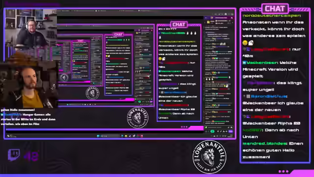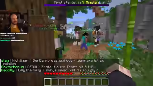 01:47:25Es wird über Wortfindungen und den Einsatz von Fremdwörtern zur Verwirrung des Gegenübers gesprochen. Im Minecraft-Spielgeschehen laufen die Dinge einfach weiter, während im Chat Nachrichten und Grüße ausgetauscht werden, einschließlich einer Nachricht an die Eltern von Bauski. Es gibt Erwähnungen von Followern und Abonnements, sowie humorvolle Kommentare über den Namen eines Teams, Petez-Meat, der für einige Belustigung sorgt. Die Teilnehmer tauschen sich über verschiedene Aspekte des Spiels aus, einschließlich der Skins und Teamzusammensetzungen. Es wird überlegt, Garligrü auf der Arbeit einzuführen und es werden Grüße an die Eltern von Bowski ausgerichtet. Es gibt auch kurze Anekdoten und Überlegungen zu persönlichen Themen, wie Geschwister und Kindheitserinnerungen. Die Kommunikation mit der Mutter über WhatsApp wird humorvoll thematisiert. Es folgen Überlegungen zu Skill und Erwartungshaltungen im Spiel, sowie der Wunsch nach kreativen Todesursachen durch umfallende Bäume. Die Freude über das Entdecken eines Spielers namens Sulu wird ausgedrückt, der jedoch zunächst ignoriert. Es wird über Teamstrategien und mögliche Teamwechsel spekuliert. Abschließend wird Judarum im Spiel entdeckt und es gibt humorvolle Kommentare über Aussehen und Fähigkeiten.