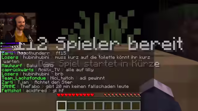 01:55:50Es wird über die Vermeidung von zufälligem Drücken der Shift-Taste gesprochen, da dies im Spiel zu Problemen führen kann. Die Teilnehmer bereiten sich auf das Spiel vor, indem sie Strategien für den Spawn besprechen: Essen und Holz suchen, in eine Mine gehen, Eisen finden, Schilde und Äxte herstellen. Es wird überlegt, wie man vorgeht, wenn man auf Gegner trifft. Die Teilnehmer tauschen sich über die Teilnahme von bekannten Spielern wie Basti GHG aus. Es wird überlegt, Hitboxen anzuzeigen, aber verworfen, da es die Ästhetik stören würde. Kurz vor dem Start des Spiels werden die Alerts deaktiviert und die Nervosität steigt. Es wird betont, ruhig zu bleiben und sich zu fokussieren. Während des Spiels werden die ersten Schritte besprochen: Holz holen und in einer Schlucht nach Stein suchen. Es wird die Freude darüber ausgedrückt, nicht als Erster gestorben zu sein. Es werden Werkzeuge hergestellt und Kohle gefunden. Es wird über den schnellen Tod eines anderen Spielers spekuliert. Eisen wird gefunden und ein Schild soll hergestellt werden. Es wird ein Ofen gebaut und Eisen gebraten. Essen wird als nächstes Problem identifiziert. Die Teilnehmer einigen sich darauf, nicht zu viel auf den Chat zu achten, um fokussiert zu bleiben. Es wird der Wunsch geäußert, Spauski und die Zuschauer nicht zu enttäuschen. Das erste Miniziel, das Finden von Eisen, wird erreicht. Eine riesige Höhle unter ihnen wird entdeckt, in der es weiteres Eisen gibt. Es wird überlegt, ob man Rüstung herstellen soll, aber zuerst wird ein Schild priorisiert.