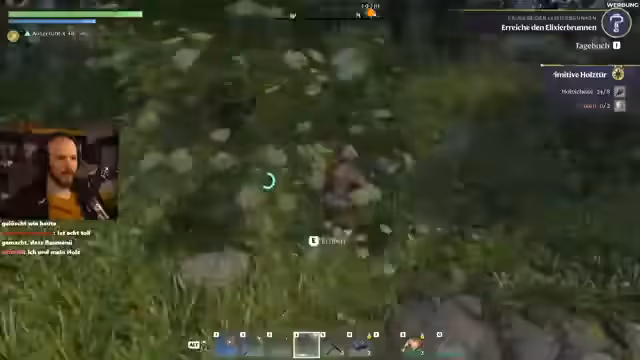 02:36:46Der Streamer entscheidet sich, die Hauptquest vorerst zu pausieren und sich auf die Herstellung von Ausrüstung zu konzentrieren. Er entdeckt, dass er einen Bogen und eine Keule herstellen kann. Für die Herstellung einer Rüstung benötigt er Garn, das er aus Pflanzenfasern gewinnen kann. Nachdem er Garn hergestellt hat, rüstet er sich mit einer Rüstung und dem Bogen aus, den er auf Hotkey 3 legt. Er entdeckt auch, dass er einen Greifhaken herstellen kann, der ihm später helfen wird, Abgründe zu überwinden. Der Streamer findet den Schmied in der Krypta des Schmieds und erweckt dessen Seele, wodurch Rezepte für Stiefel und andere Gegenstände freigeschaltet werden. Der Schmied kritisiert seine aktuelle Ausrüstung und fordert ihn auf, sich besser auszustatten. Er erkennt, dass er den Schmied mit einem Beschwörungsstab in sein Zuhause bringen muss, wofür er Äste benötigt, die er von Büschen sammelt.