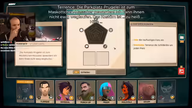 04:56:18Im Spiel Dispatch werden verschiedene Superhelden vorgestellt, darunter 'Invisigal', die unsichtbar werden kann, solange sie die Luft anhält, und 'Coupé', eine ehemalige Assassine mit der Stärke von zehn Männern, die jedoch nur halb so groß ist. Jeder Held hat einzigartige Fähigkeiten und Hintergrundgeschichten, die bei der Zuweisung von Missionen berücksichtigt werden müssen. Eine besondere Herausforderung stellt 'Trackstar' dar, der superschnell ist, aber dabei auch schnell altert. Die Missionen reichen von der Reparatur einer Toilette über die Beendigung von Schlägereien bis hin zur Verfolgung von Dieben. Der Streamer muss strategische Entscheidungen treffen, welche Helden er für die jeweiligen Aufgaben einsetzt, um die besten Ergebnisse zu erzielen. Dabei werden auch die Fähigkeiten der Helden durch Level-Ups verbessert, wobei Charisma, Intellekt, Mobilität und Kraft wichtige Attribute sind. Die Dialoge im Spiel werden als außergewöhnlich gut geschrieben und lebendig empfunden, was das Spielerlebnis zusätzlich bereichert.