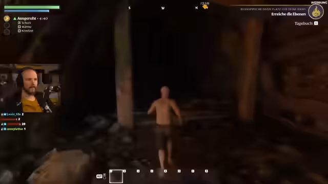 03:15:32Der Streamer beginnt mit dem Basisbau und der Organisation seines Inventars. Er entdeckt, dass Capybaras im Spiel sind und plant, eine Rüstung herzustellen. Zunächst konzentriert er sich auf das Sammeln von Pflanzenfasern und das Herstellen einer Holzfäller-Axt. Nach dem Bau eines Lagerfeuers und einer kleinen Truhe, um sein überfülltes Inventar zu entlasten, widmet er sich der Zuweisung eines Bettes für Oswald, was sich als überraschend einfach herausstellt. Er räumt sein Inventar in die Truhe, in der Hoffnung, dass das Spiel Gegenstände aus nahegelegenen Kisten zum Craften verwendet, was er als sehr angenehm empfindet. Er platziert ein Lagerfeuer und sortiert seine Werkzeuge und Gegenstände, wobei er die zwei Hotbars des Spiels lobt. Er stellt fest, dass er Pfeile für seinen Bogen benötigt und plant, Holz zu fällen, um sein kleines Lager zu errichten und Ausrüstung herzustellen.