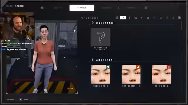 02:55:09Nach einer Prüfung der Finanzen plant der Streamer Upgrades für das Lager. Prioritär sind die Kantine, Zelt und Quarantäne-Plätze, gefolgt von einer verbesserten Scann-Einheit für einen größeren Bereich zur Beschleunigung der Untersuchungen. Bei der Prüfung einer Patientin wird über ein mögliches neues Symptom („Herpes“ vs. „Nekrose“) diskutiert. Obwohl Symptome wie Schluckauf und ein möglicher Bluterguss auftreten, wird letztlich entschieden, sie ins Labor zu schicken, um mehr über die Infektion zu lernen, wobei die Aufnahme von Überlebenden priorisiert wird.