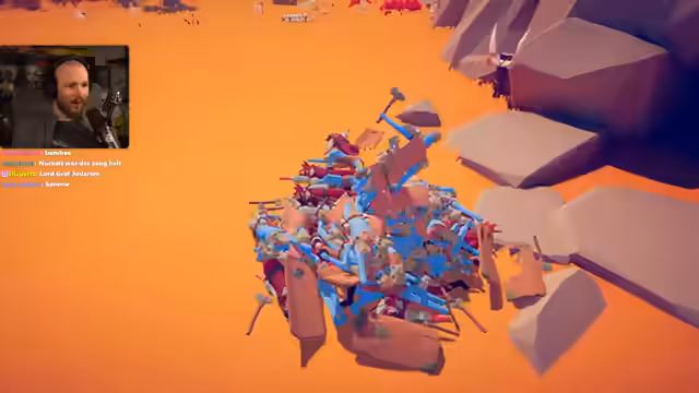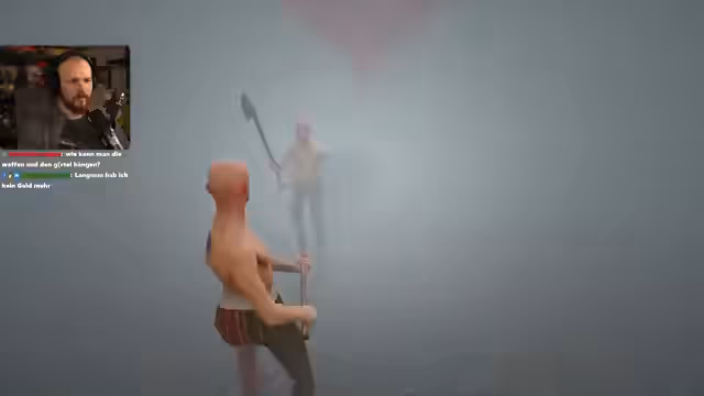00:42:59Die Half-Sword-Session entwickelt sich zu einer intensiven Boss-Kampfphase. Nachdem zunächst ein Boss mit der Mistgabel besiegt wurde (450 Punkte), folgt ein nächster Boss, bei dem ein Wechsel zur besseren Speerwaffe erforderlich ist. Der Streamer analysiert Waffen und Rüstungen: Schwerter sind gegen Rüstungen ineffektiv, der Speer zeigt bessere Durchschlagskraft. Zwischenzeitlich wird über fehlenden Helm-Schutz diskutiert, bis dieser endlich gefunden wird. Trotz mehrfacher Verwundung (verlorene Arme/Beine) und Rückschlägen wird das Ziel von 500 Punkten erreicht, gefolgt von der Ankündigung des nächsten Bosses (Sensenmann).