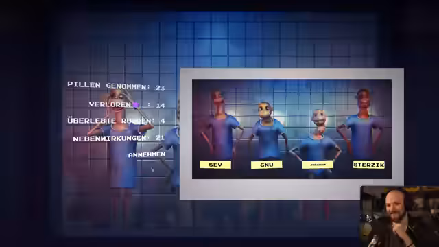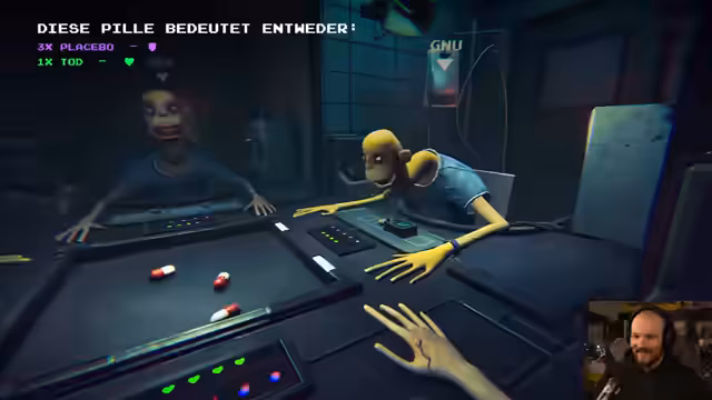 01:50:51Die Diskussion um Placebo-Pillen und deren Auswirkungen auf die Charaktere nimmt einen zentralen Platz ein, wobei die Streamer humorvoll über die Einnahme verschiedener, teils schädlicher, Pillen spekulieren. Es wird über die Konsequenzen des Verlusts von Schilden und Herzen im Spiel gesprochen, während die visuellen Veränderungen der Charaktere, insbesondere die Augen, für allgemeine Belustigung und Erstaunen sorgen. Die Streamer kommentieren ihre eigenen grotesken Erscheinungen und die der anderen, was die absurde Atmosphäre des Spiels unterstreicht. Die Spannung steigt, als die Charaktere versuchen, die Wirkung der verbleibenden Pillen zu entschlüsseln, wobei Misstrauen und strategische Täuschung eine große Rolle spielen. Die Streamer sind sich uneinig über die besten Vorgehensweisen und versuchen, sich gegenseitig zu überlisten, um die negativen Effekte zu vermeiden oder auf andere zu übertragen. Die Spieler sind in einem Dilemma gefangen, da jede Entscheidung potenziell tödlich sein kann.