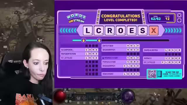 06:25:47Die Streamerin kündigt eine kurze Pause an, um etwas zu trinken zu holen und die Wartezeit mit einem Community-Spiel namens 'Words on Stream' zu überbrücken. Die Zuschauer erraten englische Anagramme im Chat. Nach der Pause werden die Highscores des Spiels präsentiert und die Streamerin fragt die Community, ob sie mit Diablo weiterspielen soll. Nach der Pause bedankt sie sich für die neuen Follower und kündigt das nächste Ziel von 20.000 Followern an. Sie fragt die Zuschauer, woher sie kommen und liest Kommentare aus verschiedenen Städten vor. Es wird kurz über die GameCity in Hamburg und Wien gesprochen. Die Streamerin bemerkt, dass niemand aus der Schweiz im Chat ist und grüßt Martin aus der Schweiz. Sie erzählt von ihrem letzten Besuch in der Schweiz und fragt die deutschen Zuschauer, ob sie den österreichischen Dialekt verstehen.