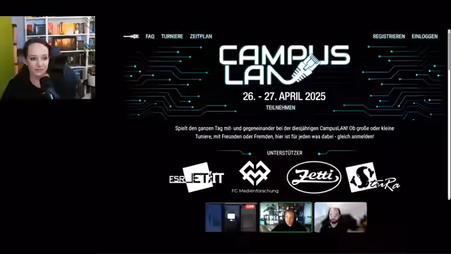 00:22:28Der Streamer stellt das zentrale Projekt des Streams vor: den Raw Talent Booth auf der Gamescom. Dieser von Greta organisierte Stand bietet elf Universitäten die Möglichkeit, ihre Spiele und Projekte einer breiten Öffentlichkeit zu präsentieren. Geplant sind etwa zehn Minuten pro Universität. Johanna wird die von den Studierenden erstellten Webseiten durchgehen, um einen Überblick über die zu erwartenden Spiele, Hardware-Lösungen oder anderen Projekte zu geben.