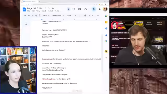 00:08:48Die Streamer bereiten den Podcast vor und geben der Community Zugriff auf ein Google-Dokument, um Themen und Buchtipps beizutragen. Joey und Thomas planen, zwei Hauptthemen aus den Einträgen zu behandeln. Auch die Idee eines KI-Specials wird erwähnt, bei dem ein Forscher eingeladen werden könnte, um die Grundlagen der KI zu erklären.