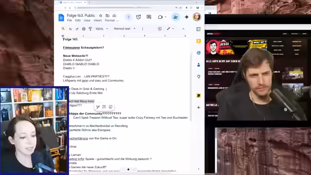00:17:34Die Streamer wählen Diablo 4 als erstes Hauptthema, da die Community hier starken Interesse zeigt. Sie sprechen über das kommende Add-on, das am 28.04. startet, und diskutieren mögliche Pay-to-Play-Modelle. Als zweites Hauptthema stehen LAN-Partys im Fokus. Sie erinnern sich an die Anfänge dieser Events mit Spielen wie Counter-Strike und die Bedeutung des niedrigen Pings.