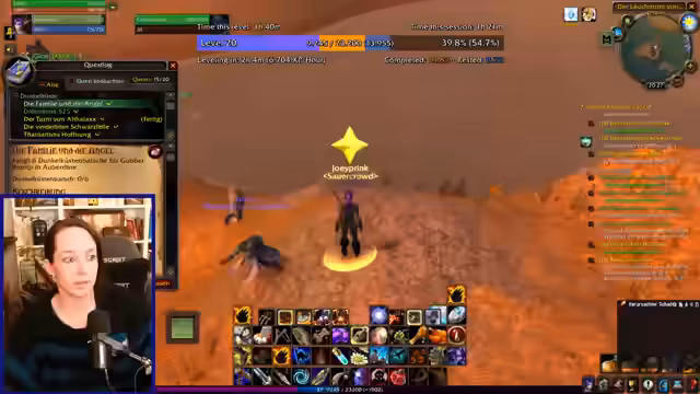 01:20:47Die Gameplay-Session ist von Frustration geprägt. Bei der gemeinsamen Quest 'Der Verräter aus Moonbrook' kommt es zu massiven Problemen mit dem Respawn von Quest-NPCs und zum 'Mob-Camping', bei dem zahlreiche andere Spieler auf denselben Gegner warten. Dies führt zu erheblichen Verzögerungen und taktischen Überlegungen. Der Streamer entwickelt jedoch Strategien, wie zum Beispiel die Kombination von Pet-Aggro und Feuerfallen, um die Quest doch noch erfolgreich abschließen zu können. Parallel dazu werden die Skills und der Level des Pets Fred diskutiert und ein gezieltes Training für den nächsten Stream angekündigt.
