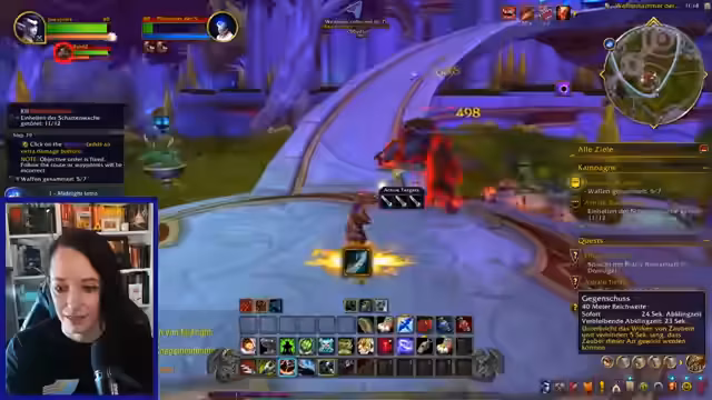 01:36:13Nach anfänglichen technischen Schwierigkeiten mit der Anzeige, wie dem kleinen Zauberbuch und der Monitorauflösung, wird die UI durch das Drücken der Umschalttaste optimiert und besser sichtbar gemacht. Im Gameplay wird das Questing fortgesetzt, bei dem Zivilisten gerettet und Gegner bekämpft werden. Dabei stellt der Streamer fest, dass er sich etwas underpowered fühlt und die Taktik lernen muss. Er erwähnt auch die Erinnerung an seinen Classic Hardcore Charakter, den er weiterleveln möchte.