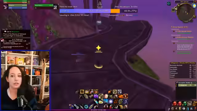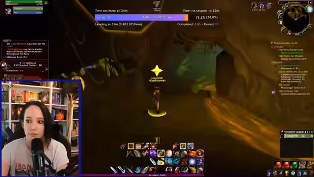 04:18:40Die Vorbereitungen für die Weiterreise werden abgeschlossen: Craften von Eiern und Gewürzen, Ablage von unnötigen Items in der Bank, Entscheidung für ein Wanderstöckchen und die Organisation von Craftrezepten. Ein Portstein nach Darkshore wird aktiviert, wobei der Streamer nervös ist, obwohl keine Gefahr besteht. Dies markiert den Verlass der Urheimat und den Eintritt in ein neues, größeres Spielgebiet mit vielen neuen Quests.