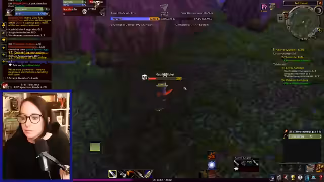 04:05:00Der Stream beginnt mit der Betrachtung der aktuellen düsteren Stimmung in der Game-Dive-Szene. Der Streamer navigiert durch eine höherlevelige Gegend, wobei er auf eine Herausforderung stößt, die an einen früheren fatalen Moment in Weberhausen erinnert. Im Chat wird ein angeblicher Level-60-Zwilling erwähnt, was auf einen schnell hochgelevelten Side-Charakter, einen sogenannten Twink, hindeutet, der anderen Spielern helfen kann. Der Fokus liegt auf der Erkundung des Gebiets und der Interaktion mit den Chat-Teilnehmern.