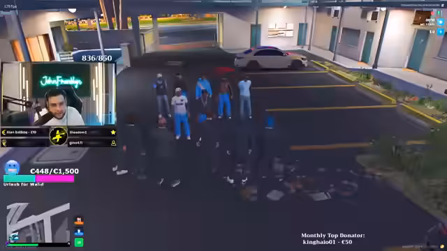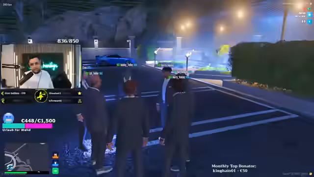 02:27:00Eine neue Fraktion 'Mara Buntagrande' kommt in die Stadt. Der Streamer stellt die Mitglieder vor: 'Der rechts neben mir ist meine rechte Hand, das ist Jakob Hennessy. Und der ganz rechts von ihnen, der Glotzer. der Avdo.' Sie erklären ihre Ziele: 'Was wir vorhaben, wir gucken erst an, wie die Regeln der Straße sind.' Der Streamer gibt Ratschläge, wie man in der Stadt überleben kann: 'Bleibt lieber unterm Radar. Macht eure Sachen. Versucht euch ein bisschen Autorität bei den anderen Gangs zu verschaffen.'