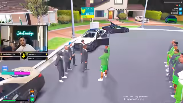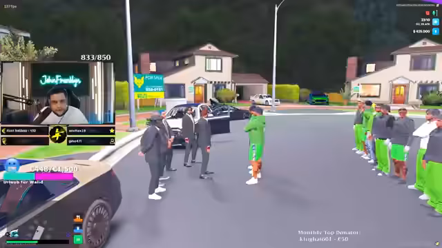 02:30:40Der Streamer bietet der neuen Fraktion Unterstützung an: 'Ich nehme euch ein bisschen mehr unter meine Fittiche. Und achtet darauf, wie ihr euch macht, was ihr macht.' Er bietet eine spezielle Finanzierung an: 'Aber auch nur, wenn ihr hier die Events dieser macht. Die Leute einlädt, guckt, irgendwas Außergewöhnliches macht.' Er gibt ihnen 6 Millionen Dollar, einen Scrap und einen Heli: 'damit ihr vollgefestigt in der Stadt seid.'
