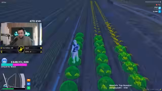 02:15:27Der Streamer wechselt zu persönlichen Themen und Nebenquests im Spiel. Er erwähnt einen Hautarzttermin aufgrund von Hautproblemen und Ausschlag im Gesicht und Bart. Im Spiel versucht er, eine Battle Pass-Aufgabe zu erfüllen und fährt mit dem Zug, wobei er sich ständig verfährt. Die persönlichen Sorgen und die Frust über die Spielmechanik mischen sich dabei ständig.