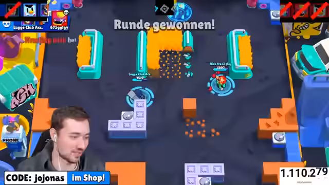 02:09:38Der Streamer hat einen schweren Start und wird gekillt. Er setzt seine Ulti ein und erzielt einen wichtigen Hit. Er findet, dass Ehrlich nicht so geil für ihn als Maisy ist, da sie eher gut gegen Tanks ist. Er erhält eine Spende von Alexander K. und ist gleich bemühtig. Er rennt in den Hypercharge rein und Logan klärt die Situation. Er befreit sich und grillt Surge, damit er seine Stufe verliert. Er gewinnt die Brawball-Runde mit 5 zu 1 und ist gleich mythisch. Er überlegt, was er in Knockout bannen soll und entscheidet sich für Juju, falls er sie selber spielen will. Er will Grom gehen, aber Grom ist ohne Hypercharge nicht so gut. Da sie der Reihenfolge nach wählen, müssen die Gegner mythisch sein. Er findet Grom First Pick nicht schlau und überlegt, Meeple oder Gas zu nehmen. Er entscheidet sich für Gas, da er sich damit wohlfühlt. Er kann auch Mr.P sehr gut spielen. Er hilft mit Mr.P und erzielt einen Hit. Er wird gekillt und es steht 1 zu 0.