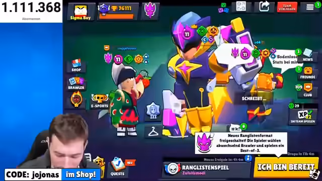 01:47:18In den ersten Spielrunden experimentiert der Streamer mit verschiedenen Taktiken und Brawler-Kombinationen. Er äußert sich unsicher über die besten Sperren und wählt zufällig Mortis. Es wird eine eklige Hockey-Taktik mit Sam ausprobiert. Der Streamer gibt zu, kein Experte in Hockey zu sein und entscheidet sich für Bi. Er analysiert die gegnerische Aufstellung mit 8-Bit, Lou und Karl und versucht, den langsamen 8-Bit zu treffen. Buster wird als nice empfunden, obwohl es kürzlich mit ihm verkackt wurde. Der Streamer platziert ein Gadget und erzielt wichtige Kills mit Hypercharge, was zu einem schönen Spielzug führt. Er nimmt einen Ape raus, setzt ein Gadget ein und wird geslaut. Ein Tor wird aus Versehen geschossen, was zu einem 9 zu 3 führt. Für die nächste Runde in Hotzone plant er, Surge zu bannen, da seine Mates ihn wahrscheinlich spielen wollen. Er überlegt, Barry zu bannen, entscheidet sich aber anders, als seine Teamkollegen Lili und Surge wählen. Er wählt Juju, da die Gegner Juju gebaut haben und überlegt Barley zu spielen.