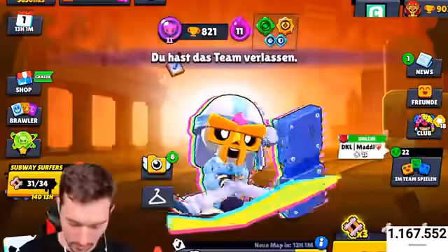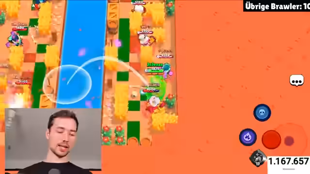 01:16:29Eine neue Minigame-Idee wird vorgestellt, bei der man nur mit einem Energy Drink angreifen darf. Dies wird als "übelgeil" bezeichnet. Es wird darauf hingewiesen, dass keine Brawler verwendet werden sollen, die Wasser überqueren können. Ein Zuschauer schlägt Miko vor, um gut abhauen zu können. Es wird kurz an ein virales "Geh dich vergraben, Mortis"-Zitat erinnert, das unerwartet populär wurde. Der Streamer äußert sich überrascht darüber, wie ein eigentlich im Ärger entstandener Spruch so gefeiert wird. Es wird festgestellt, dass die Energy Drinks im Spiel nicht aktiviert wurden, was zu Verwirrung führt. Nach einer Toilettenpause wird ein Tor von Adeyemi im Fußball erwähnt.