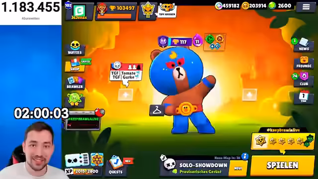 00:00:00Der Stream beginnt mit der Ankündigung eines Mini-Games Turniers mit einem Preisgeld von 100 Euro. Der Streamer jojonaz startet direkt mit der Eröffnung der ersten Lobby für ein Skin Contest Minigame. Dabei müssen die Teilnehmer ihre besten Skins auswählen und der Gewinner wird durch einen Team-Code bestimmt. Der Streamer zeigt sich gespannt auf den weiteren Verlauf des Streams und erwähne mögliche Brawler-Updates im neuen Brawl Talk.
