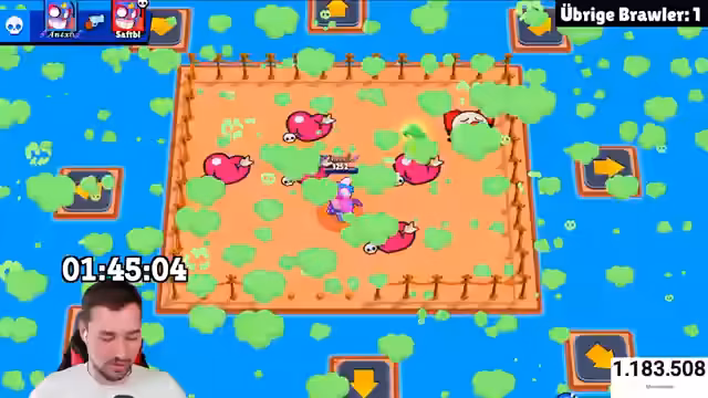 01:00:05Die Stream-Sessions konzentrieren sich auf verschiedene Brawler wie Duck, Giong, Temo, Black, Anton und andere. Der Streamer analysiert Match-ups, macht sich über Stärken und Schwächen Gedanken und zeigt eine enge Spielweise bei der Auswahl von Charakteren. Dabei werden strategische Entscheidungen getroffen, oft unter Zeitdruck und mit Fokus auf Platzierung in Turnieren. Die Dynamik zwischen den Spielern ist intensiv und wird stetig neu bewertet.