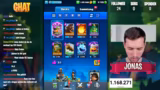 01:42:43Nach dem Erfolg bei 5.000 Trophäen werden Bonus-Chest-Optionen wie Rolltruhe, Jokertruhe und Riesentruhe geöffnet. Der Streamer gibt eine Pause für eine Woche bekannt, hat aber bereits vorproduzierte Videos geplant. Dazu zunder ein Video, bei dem sein Hund die Karten wählt, und Highlights eines Turniers. Der Stream endet mit einem Absturz, aber die Ankündigung, dass Videos weiterhin erscheinen werden.