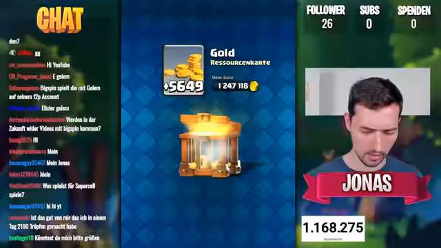 00:00:03Der Stream beginnt mit dem Ziel, die Boss-Banditin auf einem 1000-Euro-Account freizuschalten. Nach dem Start des Spiels wird die Champion-Karte direkt freigeschaltet und erreicht sofort Level 11, später sogar Level 12. Dies wird als "krass" bezeichnet. Ein Angebot im Spiel verspricht zudem eine legendarische Königstruhe als Belohnung und ermöglicht es, die Karte schrittweise zu upgraden. Einige technische Probleme bezüglich des Streamings werden erwähnt und kurz behoben.