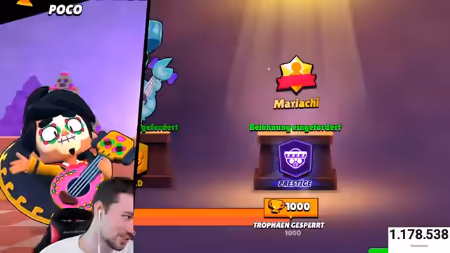 03:32:56Der Höhepunkt des Streams wird erreicht, als die letzten beiden Brawler, Grom und Gigi, erfolgreich auf Prestige 1 gebracht werden. Nach fast vier Stunden intensivem Pushen hat es der Streamer geschafft, jeden der 101 Brawler auf die höchste Stufe zu heben. Der Erfolg wird im Profil als beeindruckende Darstellung mit glänzenden Animations-Titeln gefeiert und als 'völlig krank' und 'sehr geil' bezeichnet.