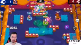 03:10:38Der Streamer experimentiert mit verschiedenen Spielmodi und Brawler-Kombinationen. Zuerst wird der Modus 'Brawl Ball' gespielt, später gewechselt zu 'Hypercharge'. Für die Map Wirbelhöhe wird der Brawler Bow mit der Star Power 'Sicht' empfohlen, um Gegner im Busch besser orten zu können. Entscheidend ist die Kontrolle über die Mitte und das Sammeln von Kisten zu Beginn jeder Runde, um einen Vorteil zu erlangen.