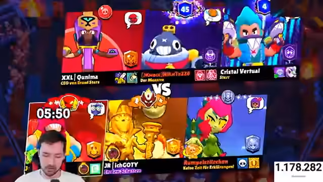 01:38:25Die Motivation für den Prestige-Push bleibt hoch, der Fokus liegt darauf, die restlichen Brawler schnell zu vervollständigen. Der Streamer plant, nach dem gemeinsamen Puschen Michelle bei ihrem Stream zu raiden, weshalb der Zeitdruck steigt. Die Analyse des Tempos zeigt, dass in etwa einer Stunde 600 Trophäen erreicht werden, was als ausreichend für das verbleibende Prestige angesehen wird. Er appelliert an das Team, mehr schnelle Siege zu erzielen, um das Ziel nicht zu verpassen.