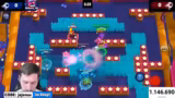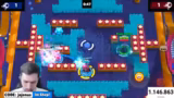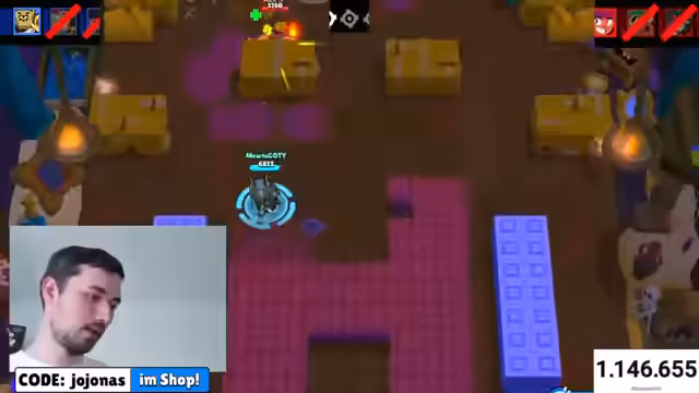 00:39:30Der Stream wechselt in den Team-Coop-Modus, um den Account auf die höhere Trophäenzahl vorzubereiten. Die Challenge erweist sich als deutlich schwieriger als erwartet, da der Account im Vergleich zu den Gegnern stark unterlevelt ist. Mortis macht mit seinem geringen Schaden kaum einen Unterschied im Brawl Ball. Der Streamer erkennt, dass Strategie und die Mithilfe der Mitspi entscheidend sind, und agiert defensiv, um die Streak aufrechtzuerhalten, was jedoch zu einer frustrierenden Situation führt.