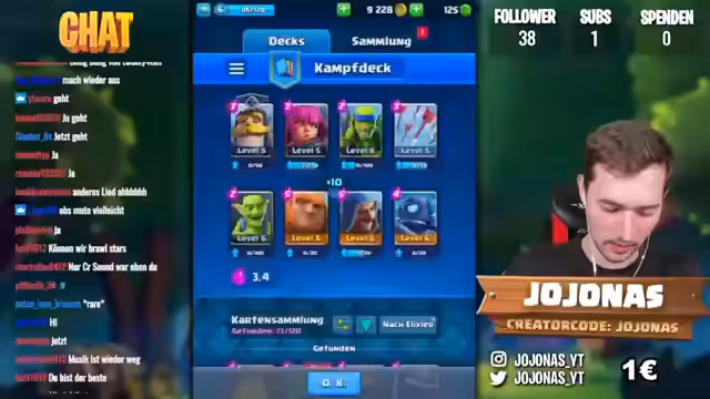 00:00:00Der Stream beginnt mit der Ankündigung eines neuen, exklusiven Clash Royale-Projekts. Es handelt sich um einen Account, für den im Laufe des Streams und der gesamten Content-Reihe insgesamt 1000 Euro ausgegeben werden sollen. Der Streamer begrüßt seine Zuschauer und erwähnt, dass es sich um einen Testlauf für die YouTube-Video-Performance handelt, da das Projekt sehr gewünscht wurde. Der Chat ist direkt im Overlay integriert, was der Streamer als positives Highlight hervorhebt. Zudem wird angekündigt, dass alle Einnahmen aus Subs und Bits für wohltätige Zwecke an die Deutsche Krebshilfe und den Deutschen Tierschutzbund gespendet werden, wobei eine Gesamtsumme von 26.000 Euro seit Januar 2024 erwähnt wird.